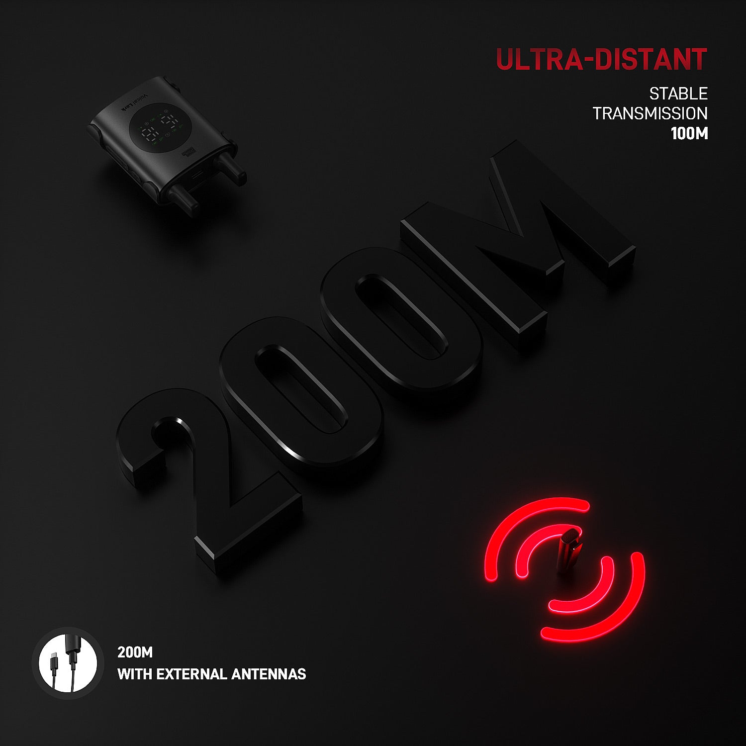 - Working Distance: 100 – 200 Meters (110-220 yards) without obstacles